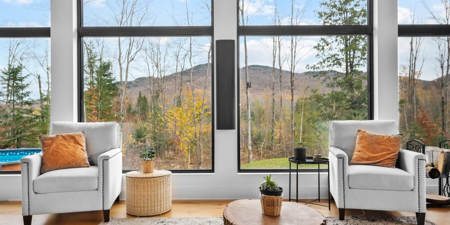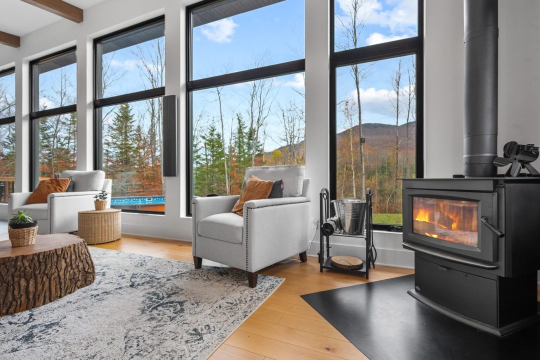 With ceilings ranging from 9 to 12 feet, the house offers magnificent brightness and stunning views of the peaks of Pic-de-l’Ours and Mount Lily-Butters. On a two-acre plot, a spacious terrace, a pool, and preserved wooded areas offer privacy and relaxation.