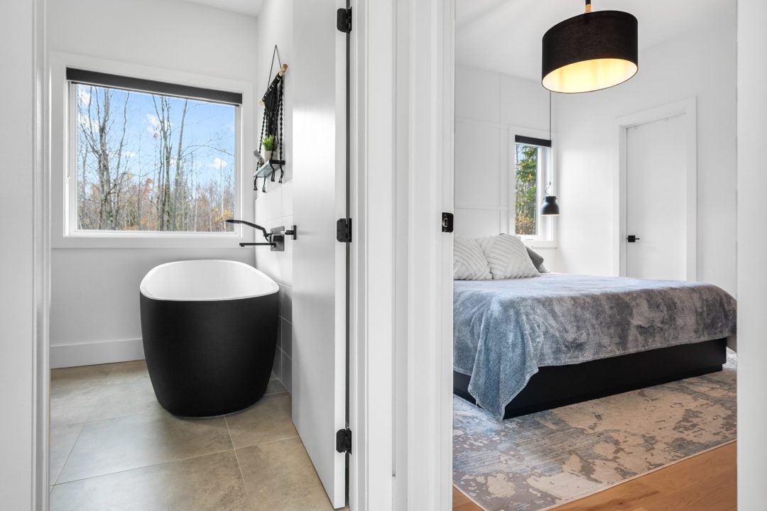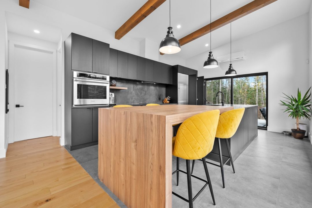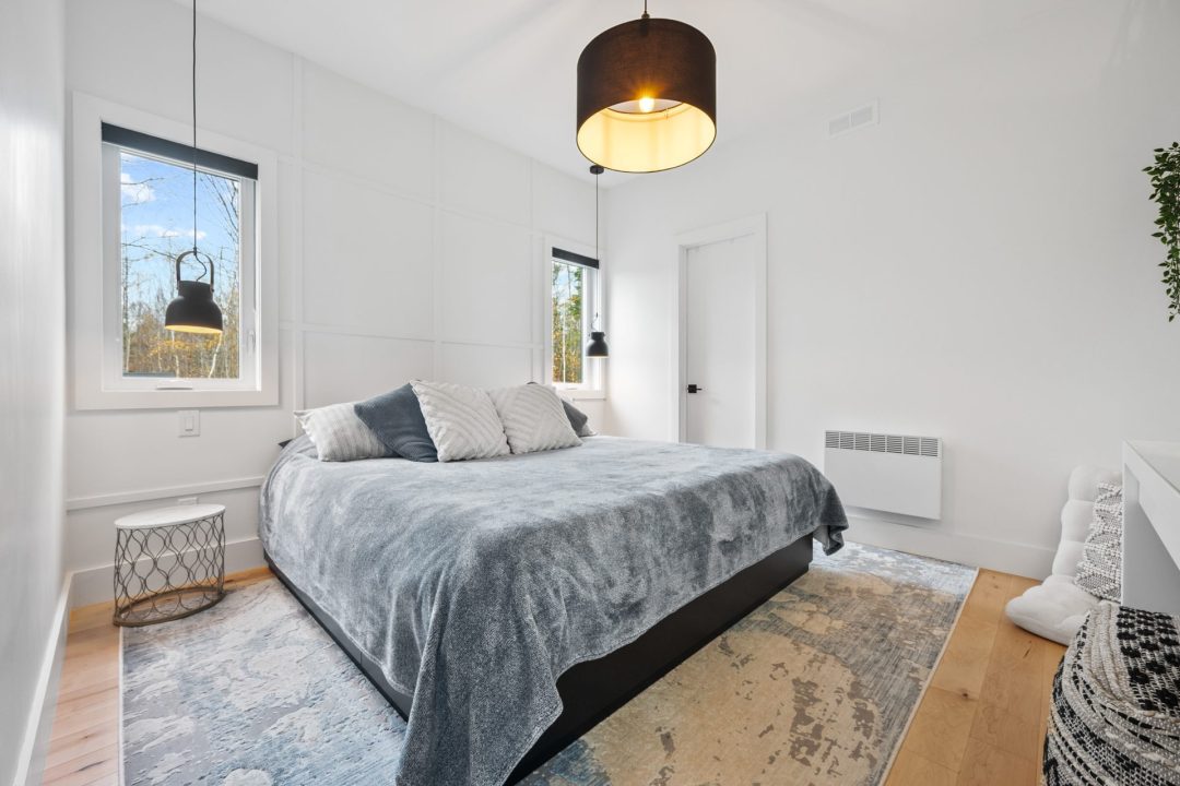 The residence based on the Boréale model is a symbol of sophistication, blending noble materials and elegant design. Its exterior with wood-effect metal cladding ensures durability and modern allure, while the interior exudes comfort with granite and quartz countertops, ceramic and maple floors, and radiant concrete flooring in the basement.