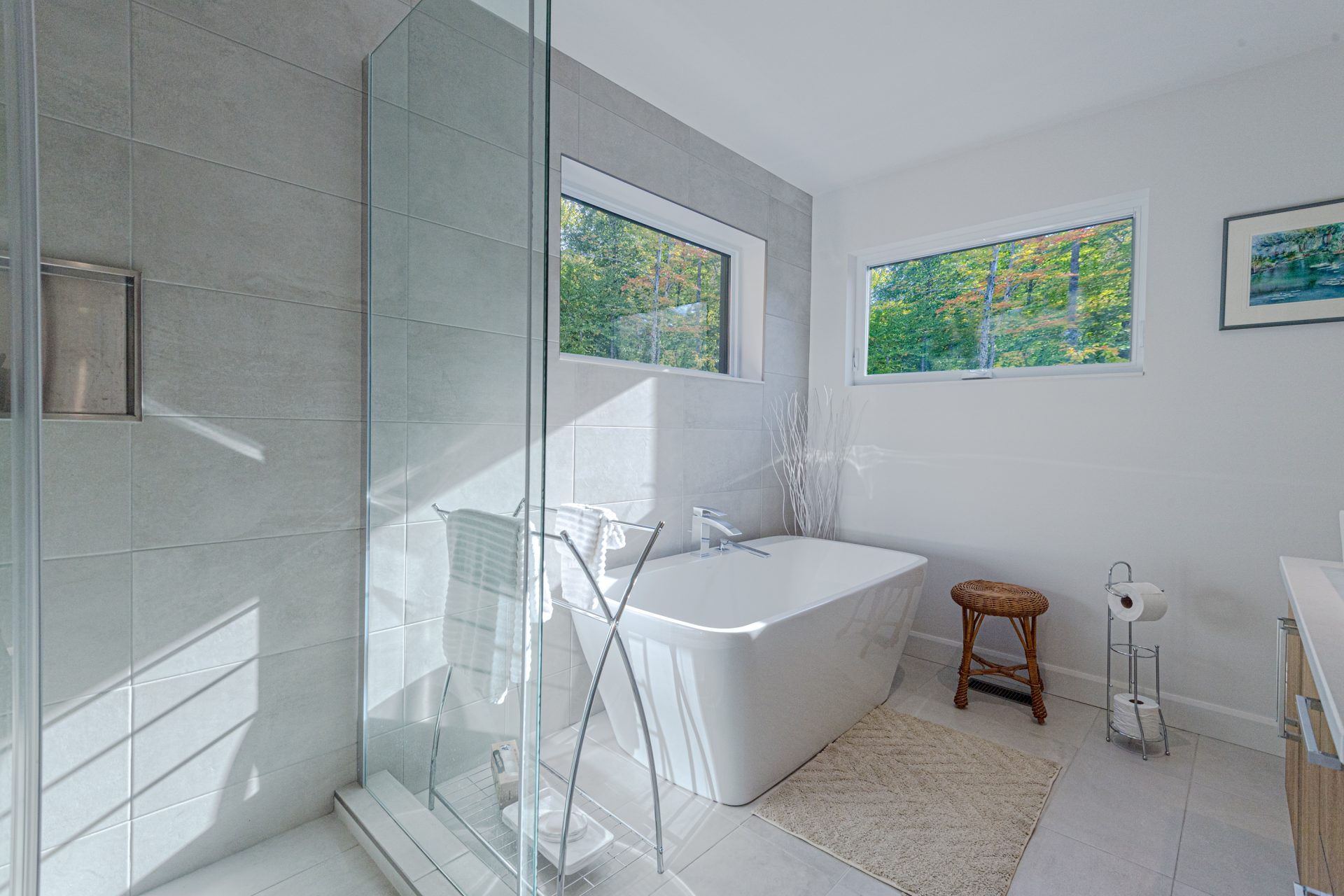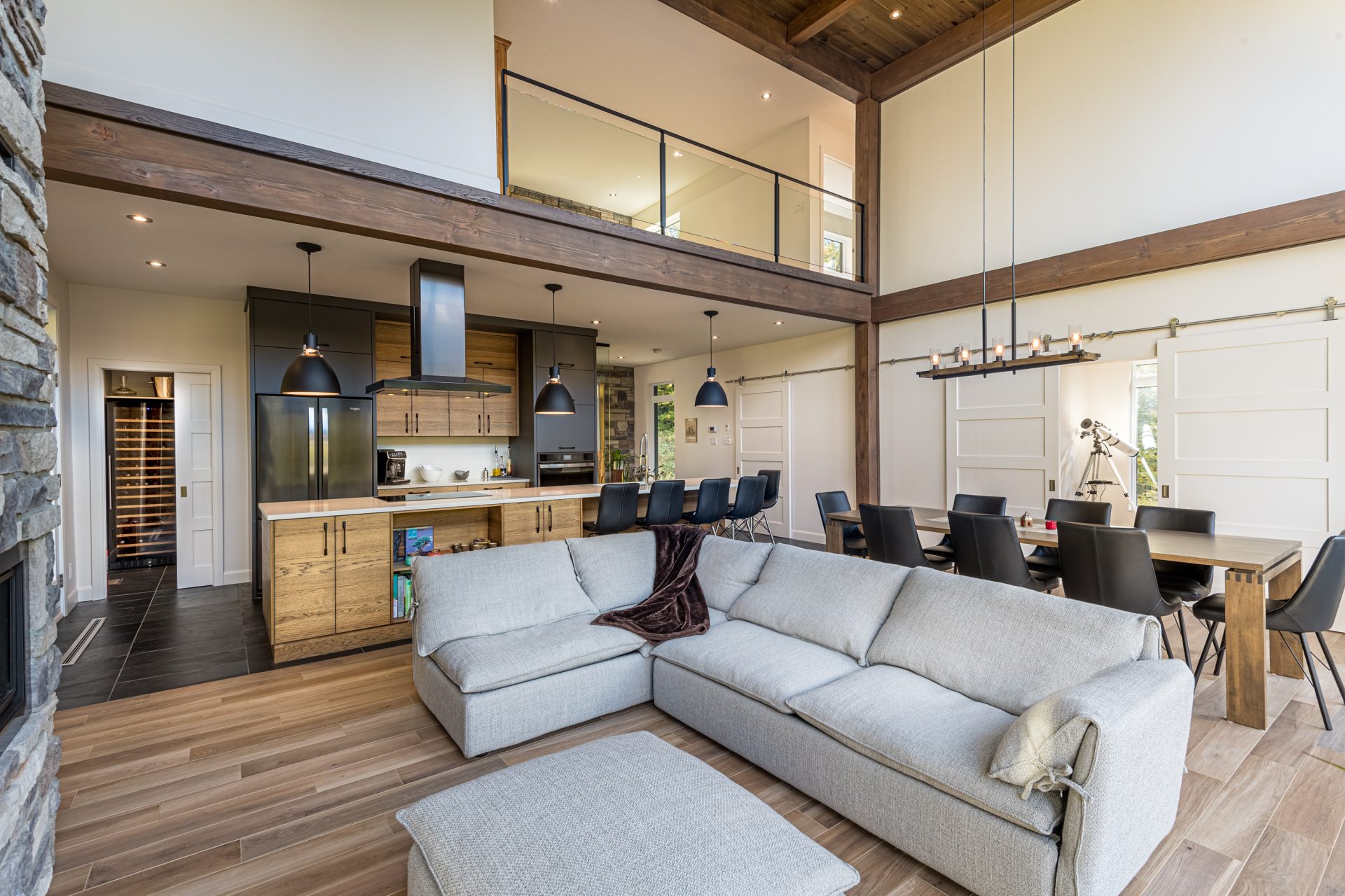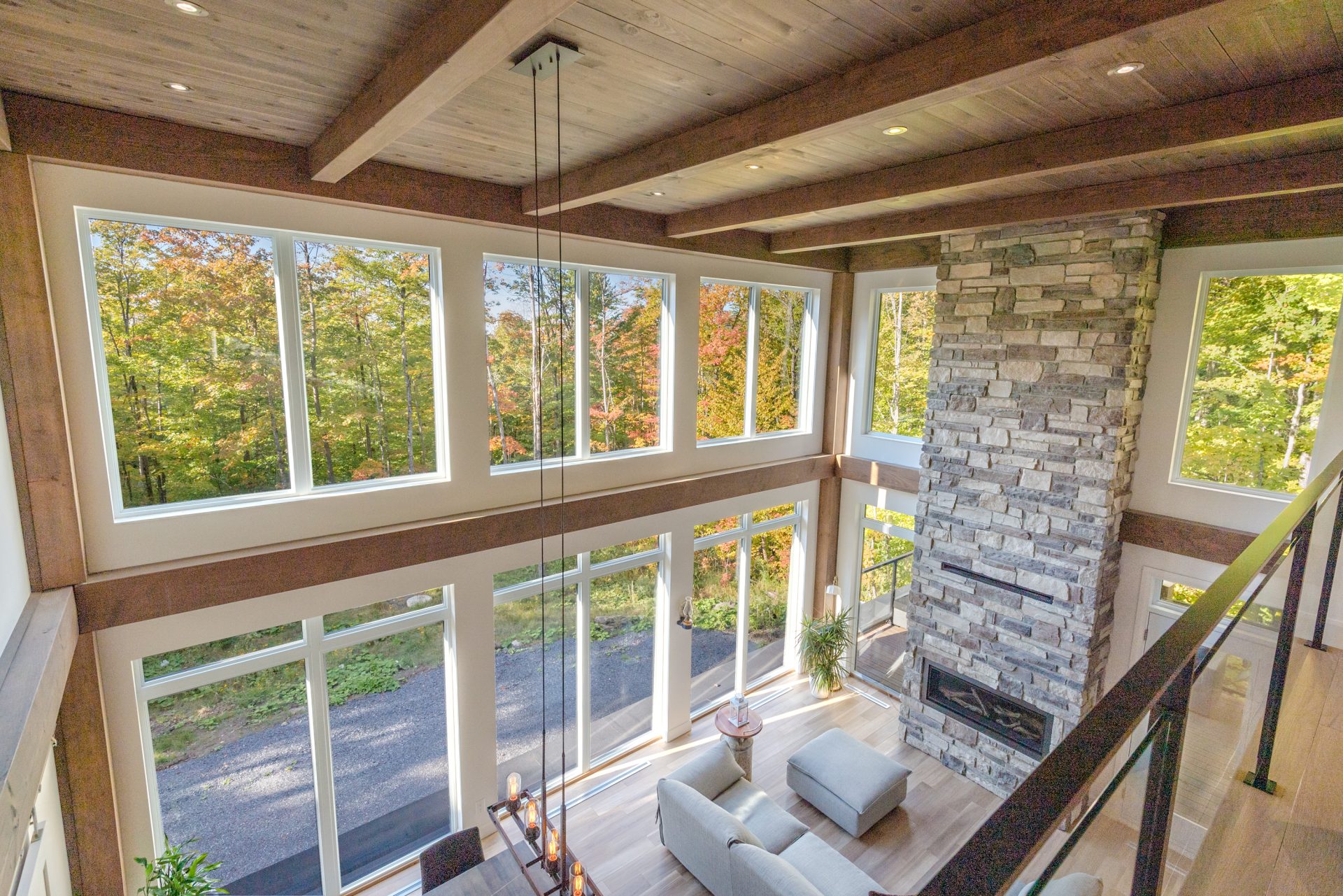 Nichée en plein cœur du Mont Sutton, cette magnifique résidence est idéale pour un terrain avec une vue panoramique à l’arrière. L’abondante fenestration de l’aire de vie, qui se déploie sur deux étages, est accompagnée d’un impressionnant manteau de cheminée en pierres. La vue de la mezzanine et des chambres à coucher au deuxième étage est aussi grandiose.