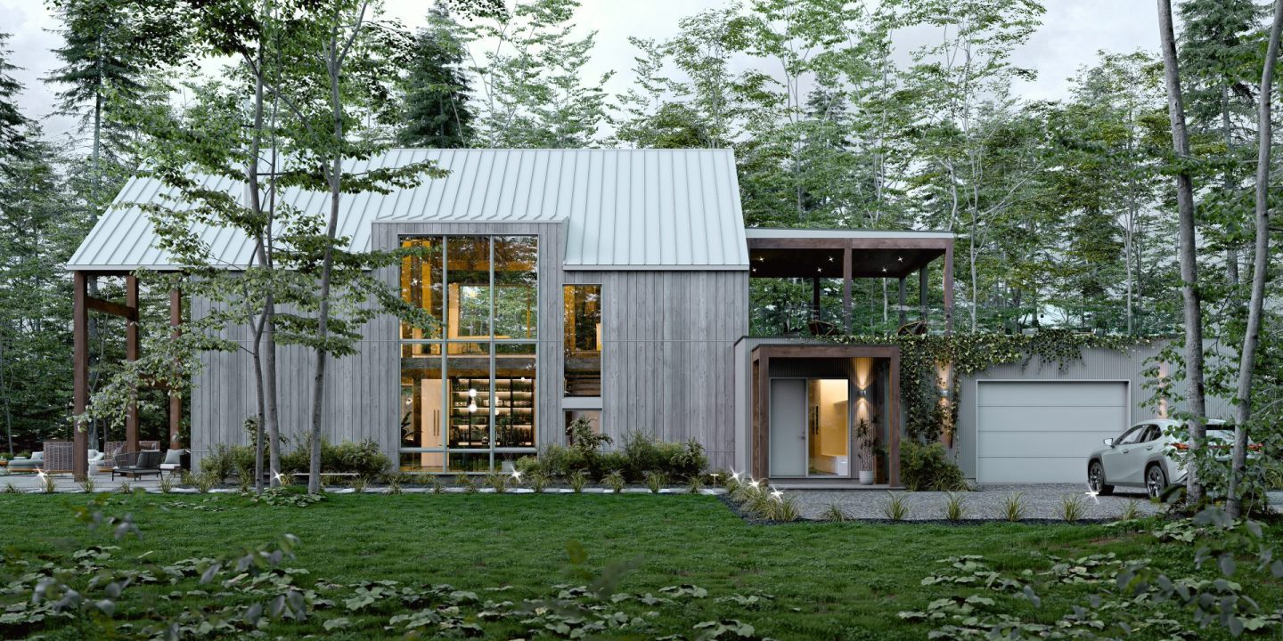• Aire de vie et mezzanine avec charpente